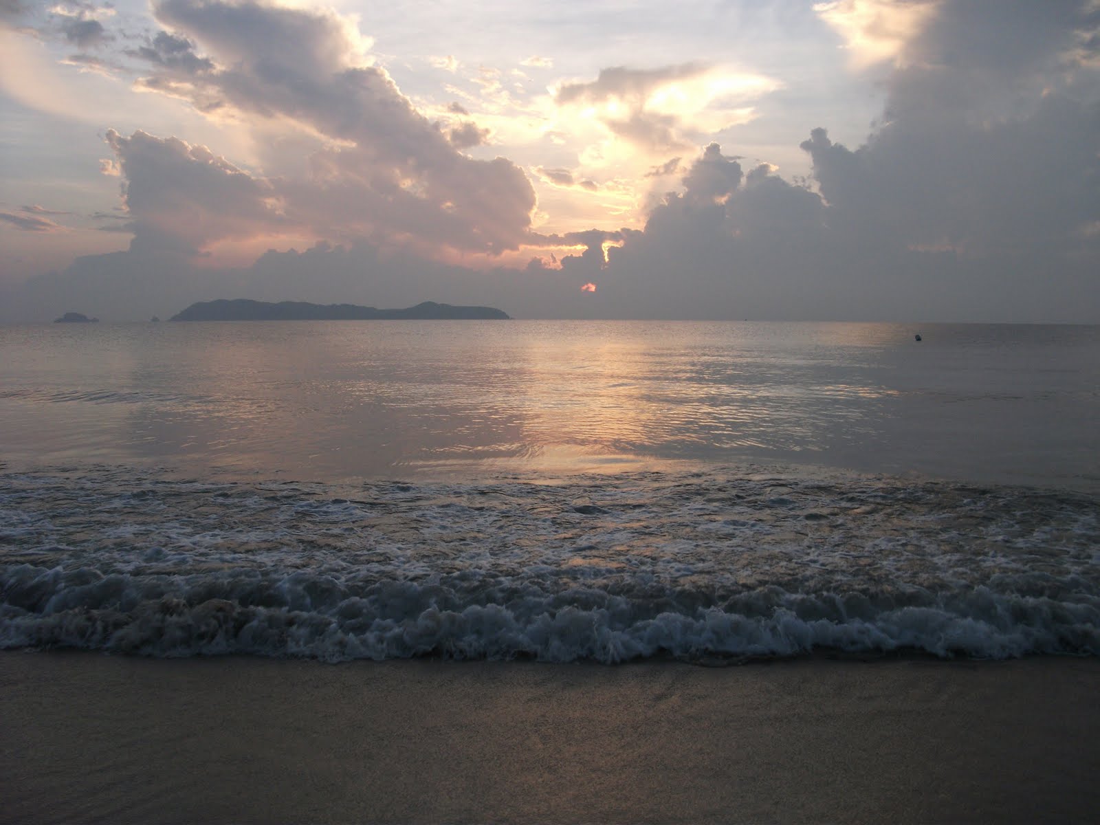 Pemandangan Pulau Kapas dari pantai di Impiana Chalet ketika matahari pagi mula untuk terbit